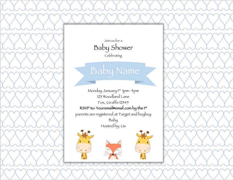 Animal Themed Baby Shower Invitations Baby Shower Invitations Digital Download Digital Files