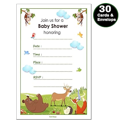 30 Baby Shower Invitations Boy Or Girl With 30 Envelopes Gender Neutral Fits Perfectly With Safari Jungle Zoo Animals Baby Shower Decorations
