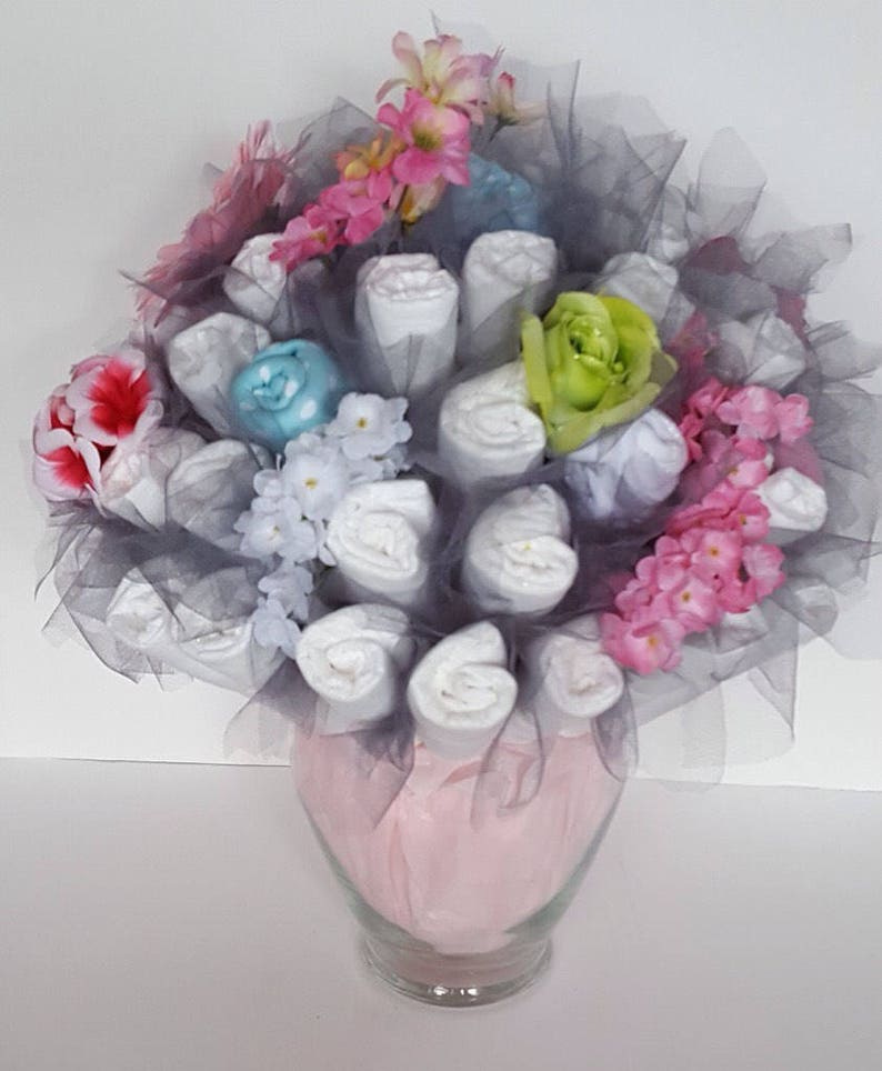 Pink Gray Diaper Bouquet Baby Shower Centerpiece Baby Girl Shower Decorations Unique New Baby Gift New Mom Gift Baby Shower Ideas
