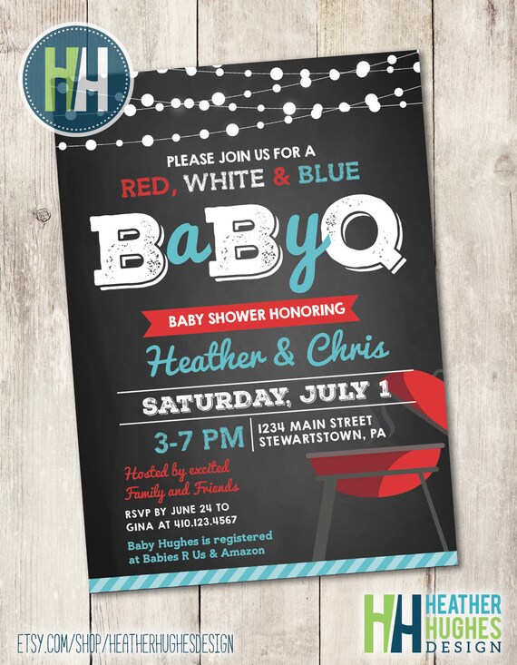 Red White And Blue Baby Q Shower Invite Gender Neutral Baby Shower