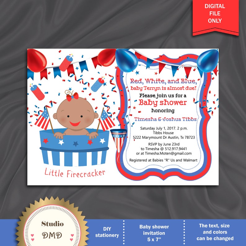 4th Of July Baby Shower Invitation Red White Blue Baby Girl Patriotic Baby Shower Invitation Summer Baby Printable Digital File Bs26