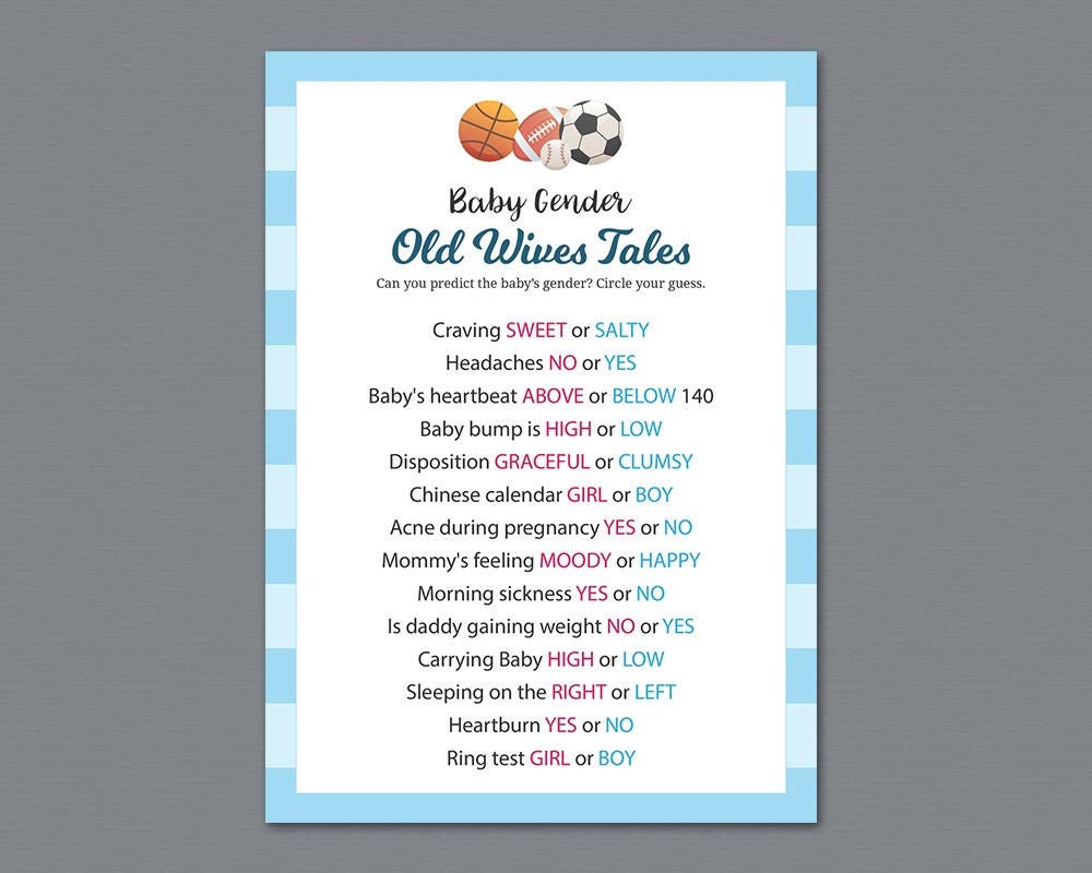 Old Wives Tales Gender Reveal Baby Shower Game Printable Football Sports Gender Prediction He Or She Boy Or Girl Blue Or Pink B011