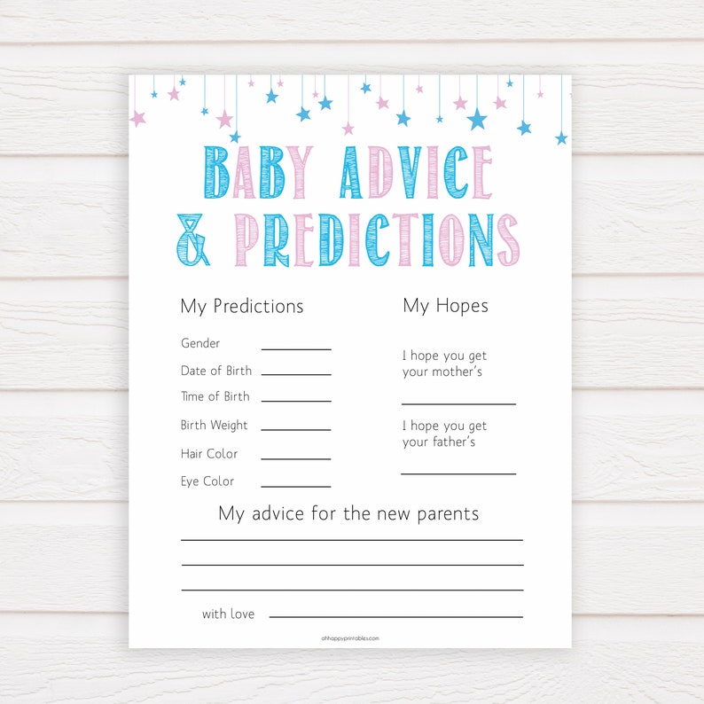 Gender Reveal Baby Advice Predictions Baby Shower Games Baby Advice Game Printable Baby Predictions Games Gender Reveal Games Gr1