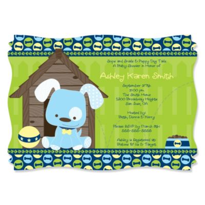 Boy Puppy Dog Personalized Baby Shower Invitations Set Of 12