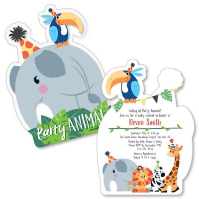 Jungle Party Animals Shaped Safari Zoo Animal Baby Shower Invitations Set Of 12