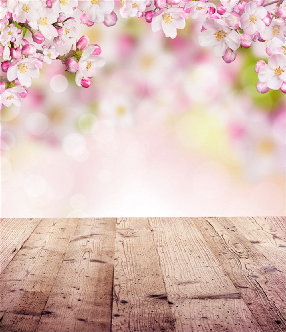 Newborn Baby Shower Backdrop Spring Flower Blossoms Pink Photography Backdrops Wooden Boards Floor Kids Studio Photo Shoot Backgrounds