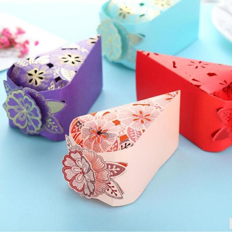 10pcs Triangular Cake Shape Gift Box Wedding Favors And Elegant Candy Box Baby Shower Wedding Party Supplies Packing Case