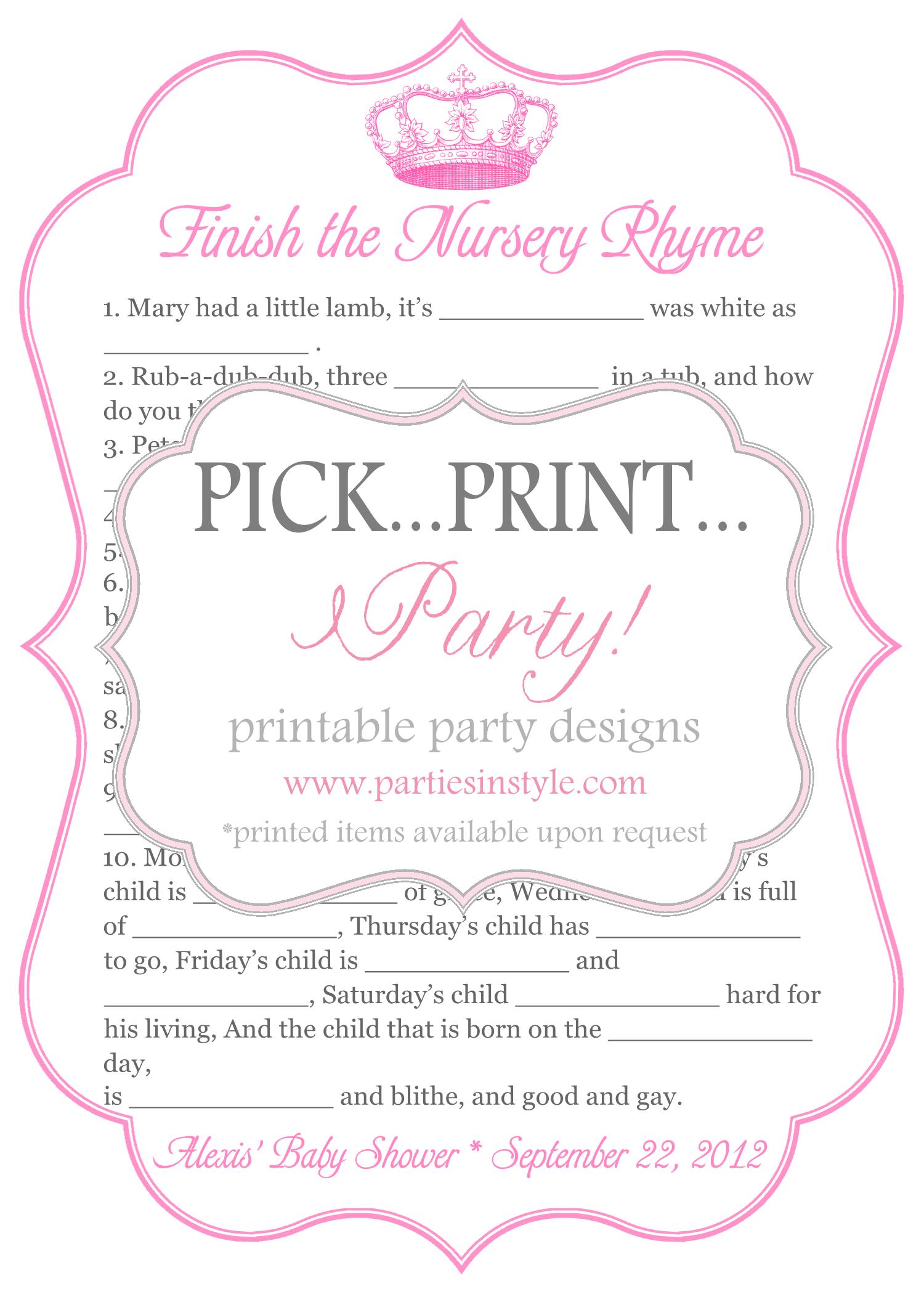 Baby Shower Game Finish The Nursery Rhyme Printable Diy